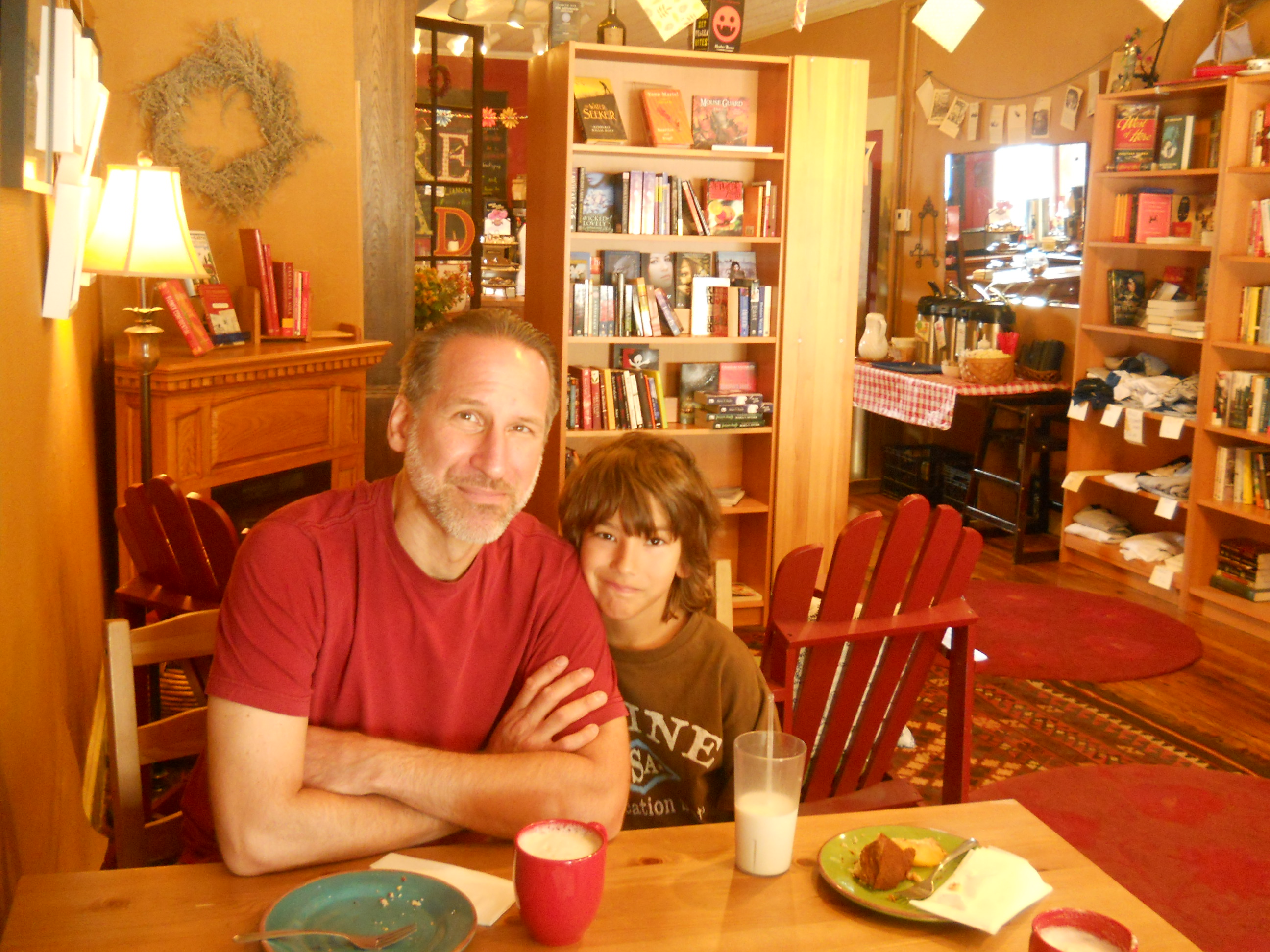 Two stops today. In the morning we hit the Red Canoe Bookstore and Café in Baltimore. It’s a beautiful store with a great YA selection and incredible muffins (really, I tried three different types, the apple/mango, the peach cobbler, and the mixed berry) and good coffee. It was a wonderful way to start the day. Max picked up a graphic novel and I we each got a t-shirt. The owner, Nicole, said these days they make more money from the café than the books and that she’d be specializing in YA and kids books to hone in on that market. It’s the kind of place you park yourself with a good book (purchased of course) or your computer, and read – only getting up every half hour or so to get another muffin or a refill on your coffee. Ahhhh.