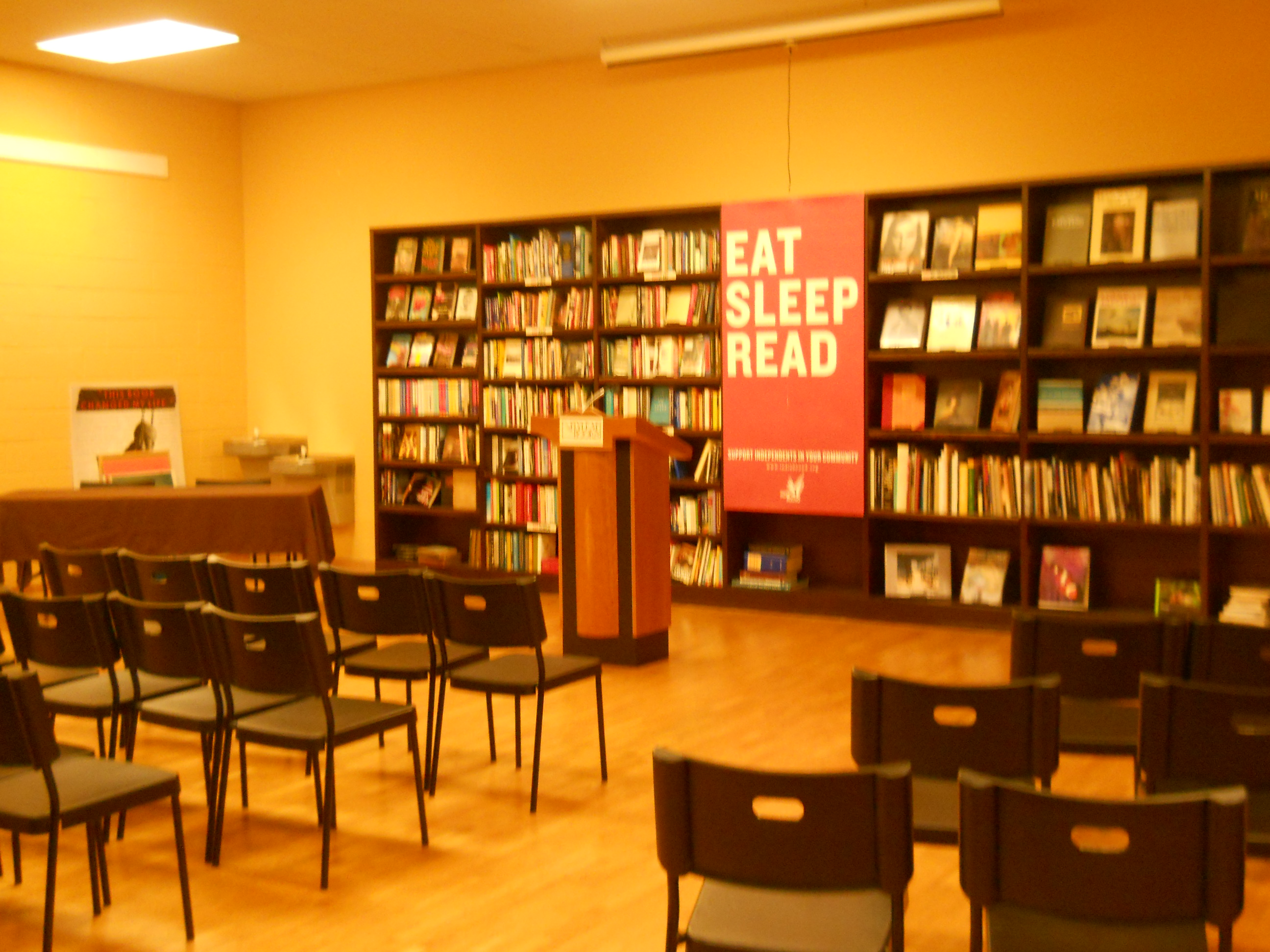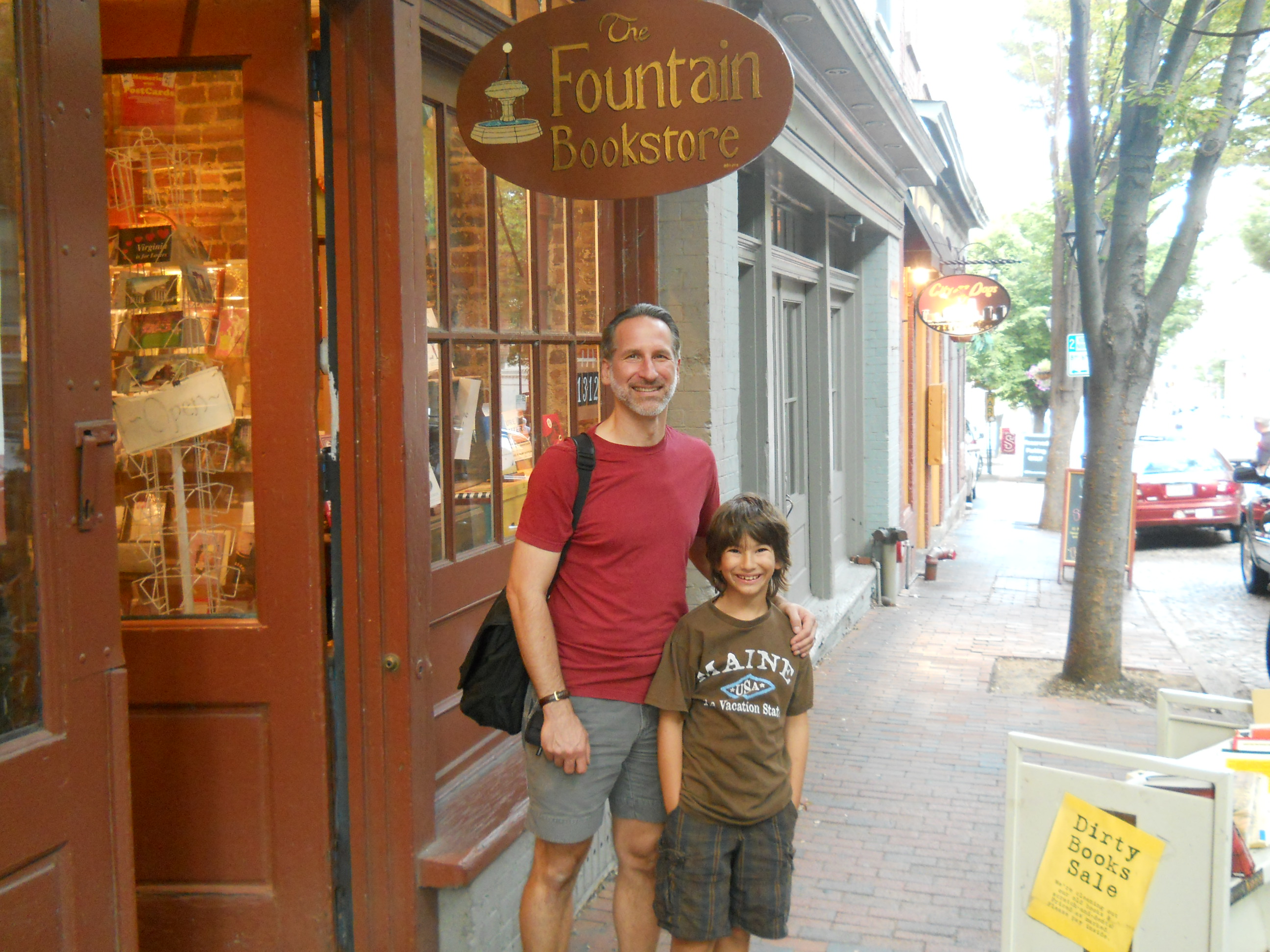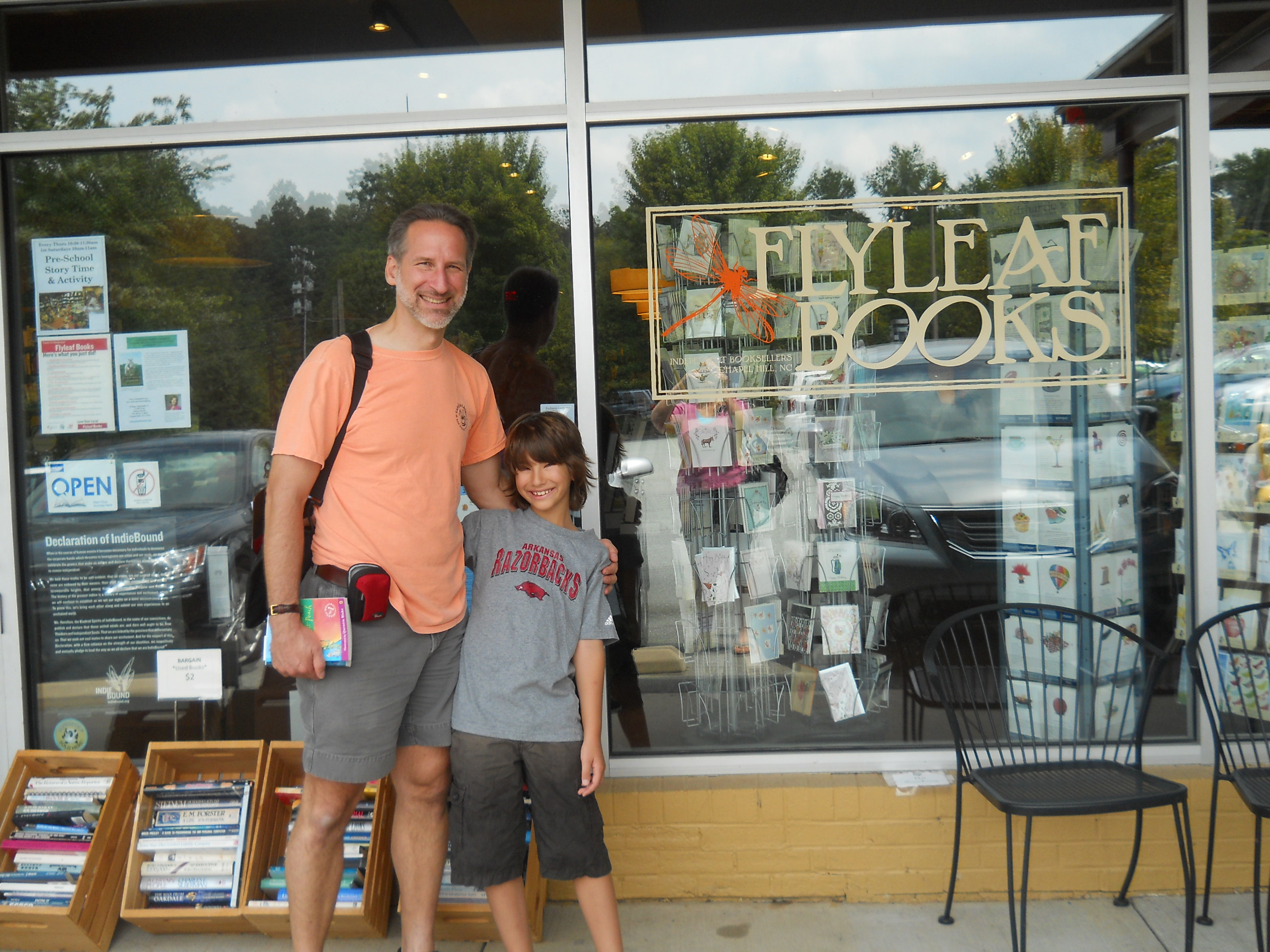 Fly Leaf bookstore in Chapel Hill is the absolute most beautiful bookstore I’ve seen in a while. Some independent stores are quirky, some small, some big and overfilled, some sparse on the shelves and heavy on the muffins, but Fly Leaf, oh this is a beautifully laid out store. There’s a great kids space. The shelves have staff picks marked and easily read all over the place – very colorful and eye appealing. The color of the store just says come in, sit down, gaze at books, read, read, read, ahhhhhh. Seriously this is a good-looking store. The owner Jamie was very nice considering I had no appointment and she was on her own while the others were on break. Still I threw Kelly Justice’s name in the mix (thanks again Kelly) and yes, Jamie took a moment from the register to bring my book back to her store partner and kid’s buyer for review. Max bought two books there and I wanted to buy one also but I’m banned from hardcovers for a while as we’re out of space back home. Behemoth is calling to me though.