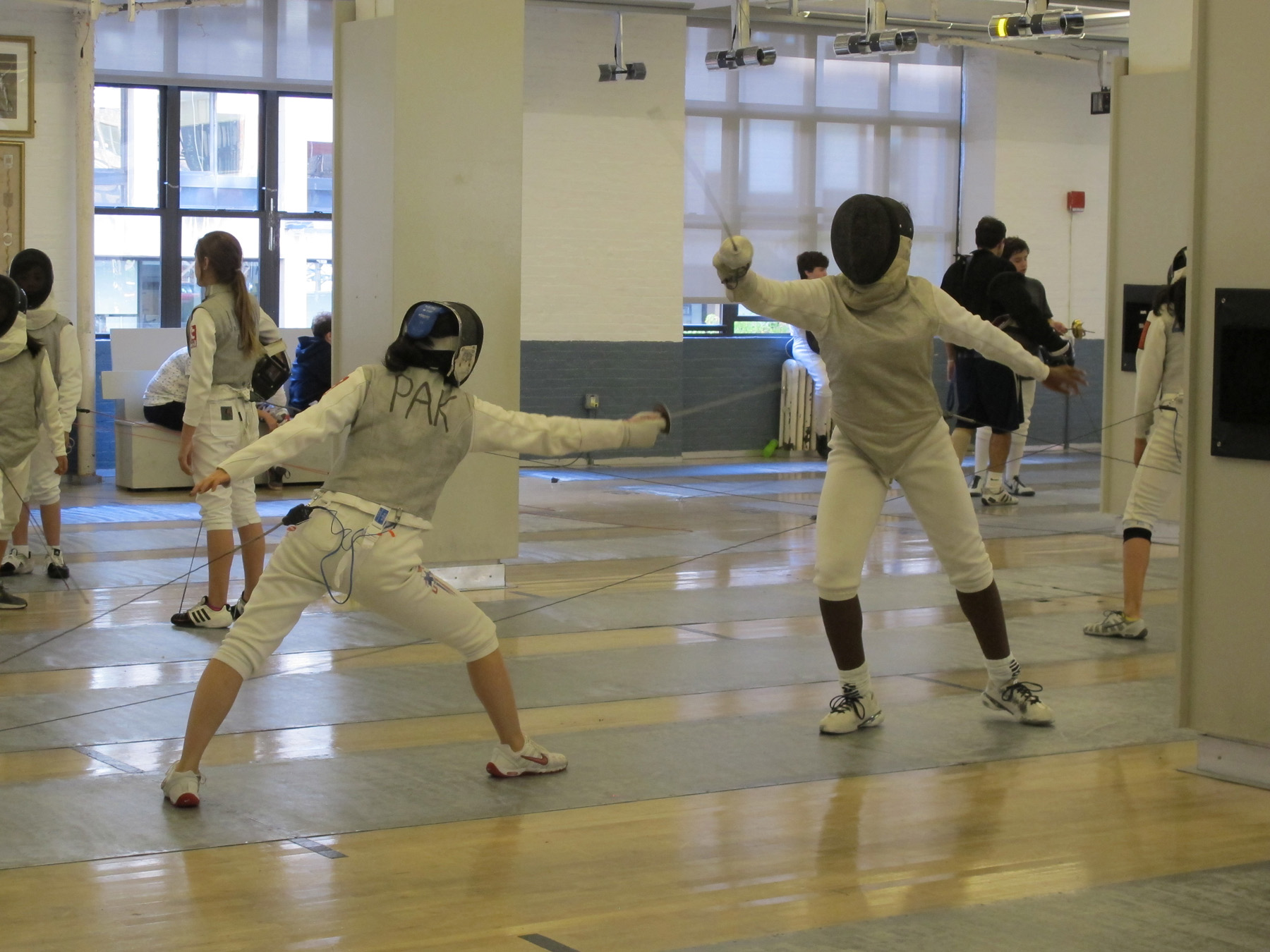 The Fencers Club (where foil, sabre, and épée were all being demonstrated with great physicality) was next. The salle was packed. The manager, Jonas, was kind enough to come over and give us all some background on the sport and the club while everyone sat on the wall benches looking past him to gaze at the action on the strips. Four students left with club brochures. I overheard them making plans to come back and try the sport out. “You won’t regret it,” I said. Outside of rugby, it’s about the greatest sport/martial art ever created.