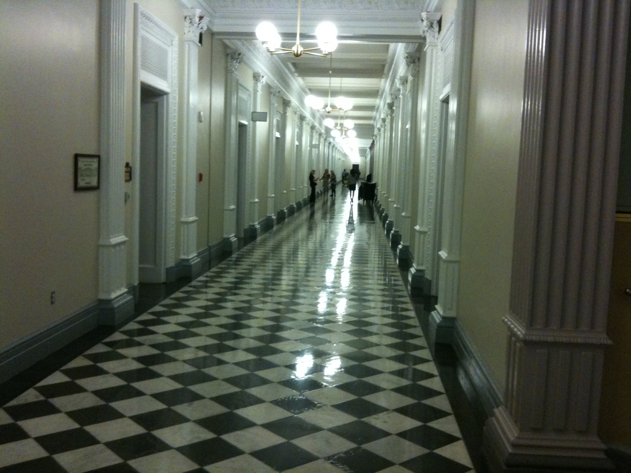 Now check out the picture of the long hall. The picture doesn’t do the reality of how long this hall is justice. It is easily one hundred yards long – an endless hall of bureaucracy with marble floor, hanging lights and door after door, after door…